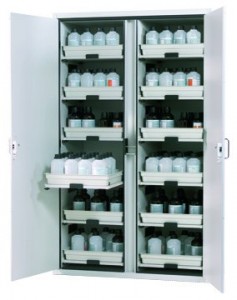 Combine storage of inflammable liquids, acids, alkalis in one safety cabinet with the possibility of optimal adaptation of internal chamber.