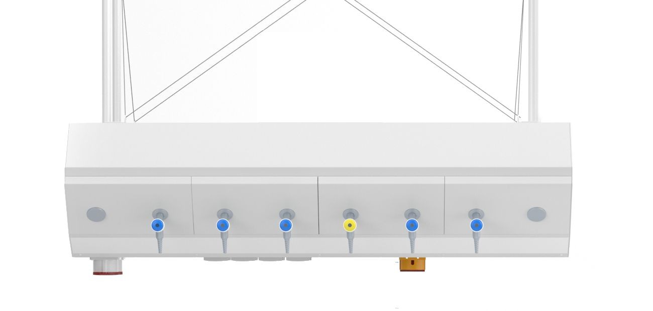 | Possible equipment of a cassette | W. 300 mm - water, 3x gas, 1x electric distribution board, 8x socket 230 V W. 150 mm - switches, 2x socket 400 V, 1x exhaust |