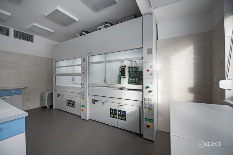 Equipped with MERCI® laboratory furniture, service cells and fumehoods