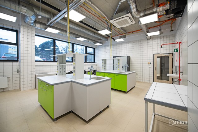The pavilion exemplifies the integration of modern technologies with a focus on sustainability. As part of the project, we supplied top-of-the-line MERCI® laboratory and office furniture, which is fully certified and meets the highest standards of quality. This equipment is key to ensuring the ergonomics and functionality needed for a modern educational environment.