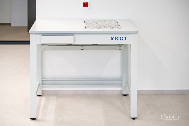 A weighing table with a granite countertop minimizes vibrations and guarantees maximum accuracy when measuring samples. Its stable construction eliminates the impact of external shocks, crucial for highly sensitive laboratory scales.